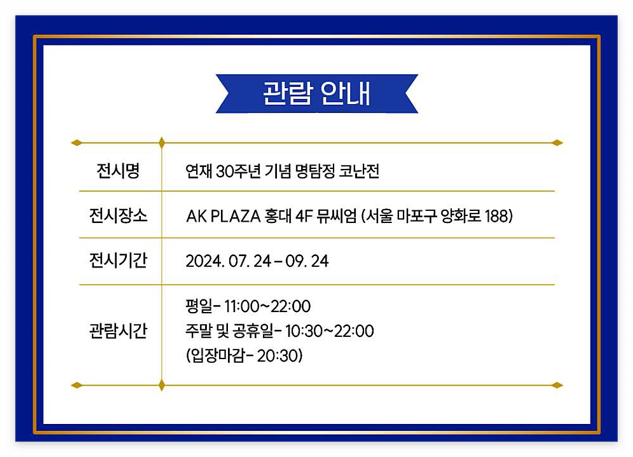 어느덧 코난이 우리 곁에서 30년을 함께한 것을 기념하는 특별한 전시회가 열립니다.
