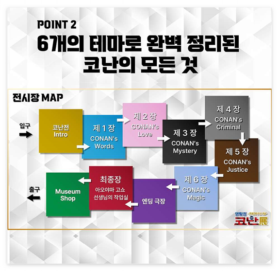 코난의 역사를 다양한 테마로 재구성하여 더욱 몰입감 있는 경험을 제공합니다.