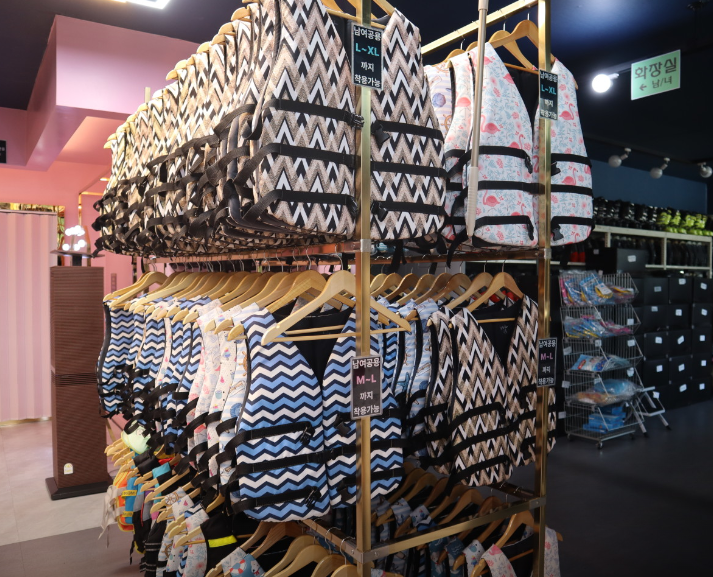 오션월드에서는 구명조끼를 외부 대여 시설에서 빌릴 수 있으며, 선베드와 수건 등은 입구 쪽에서 대여하거나 구매할 수 있습니다.