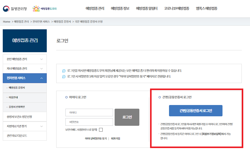 예방접종 도우미 사이트에 접속하시면 아래와 같은 화면이 나오는데요