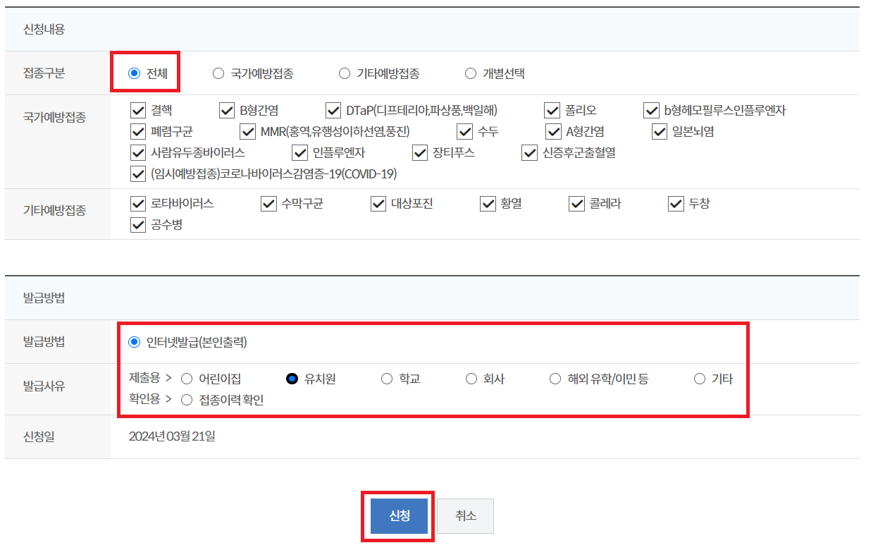영유아 예방접종증명서 발급